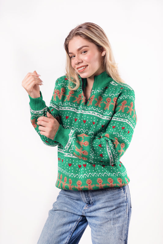 Abrigo Navideño Galleta Verde Cierre